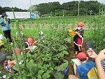 なすの花の色やピーマンの花の小ささに驚いていました。カマキリもいてみんな盛り上がりました。