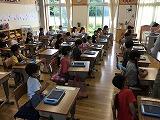 1年生もタブレットを使って学習をしています。アドバイザーの先生の説明を真剣に聴いていました。