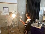 6年生は理科室で月の形が変わる様子を模型を使って実験しました。