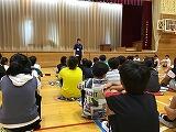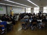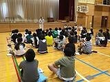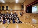 校長先生の話です。修学旅行での6年生の活躍を全校に伝えました。