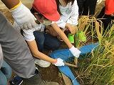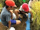 ほとんどの児童が初めての体験で、鎌を使って収穫していきました。
