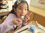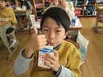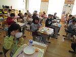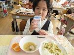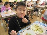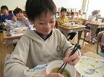 今日の給食はカレー麻婆豆腐丼でした。1・2年生の様子です。