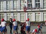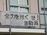 紅白玉入れを楽しみました。児童会の6年生で作った「全力を尽くせ!運動会」の横断幕もあります。