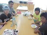 先生コーナーもあります。「スライムづくり」と「折り染め体験」です。