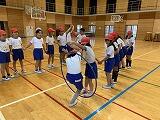 2年生では体ほぐし運動、体つくり運動を行いました。みんな笑顔で意欲的に取り組みました。とても盛り上がりました。
