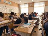 1年生では、たし算の学習をしています。すばらしい集中力です。問題を解く楽しさを味わっています。