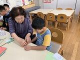 地域の方々の体験コーナーでは紙飛行機やキーホルダーなど「紙細工」を行いました。