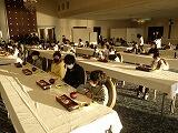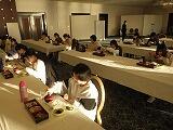 実行委員を中心に到着の会を行い,いよいよ待ちに待ったホテルでの生活がスタートです。