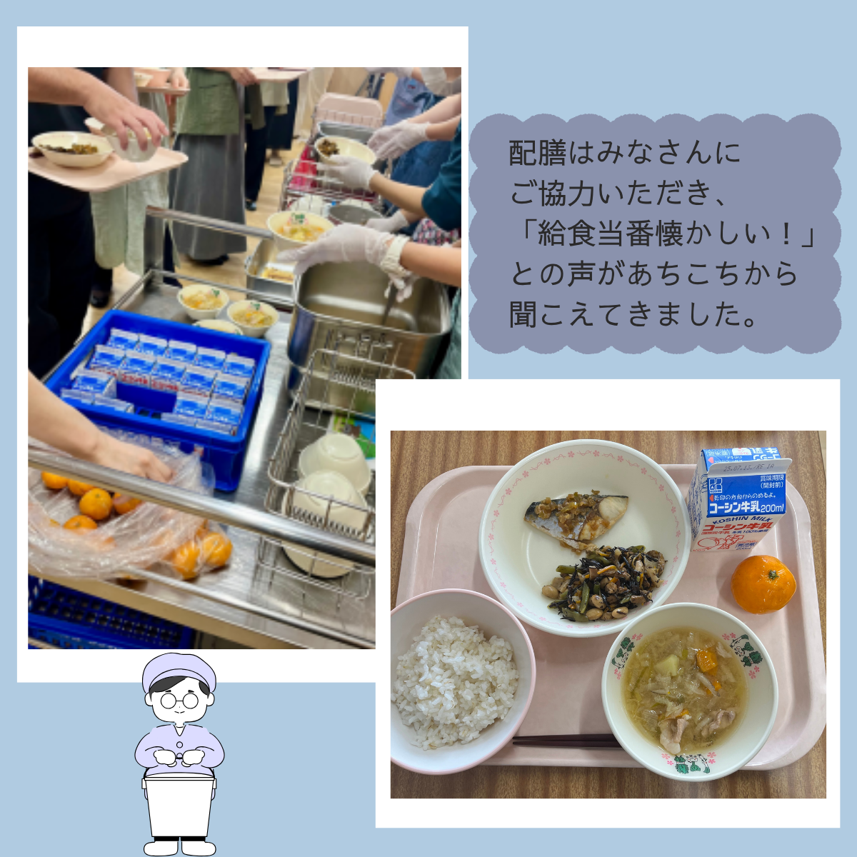 向かい合っておしゃべりを楽しみつつの給食タイムは、学生時代を思い出す懐かしい雰囲気でした。