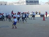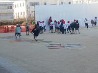 狭くなりつつある校庭では、3学級が体育を同時展開中です。