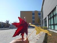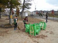 落ち葉掃きをしていると、何人かの児童がお手伝いをしてくれます。からからの落ち葉を
