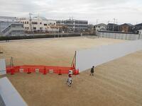今日の写真は、いよいよ校庭の一部に壁をつくり新校舎建設のための本格開始の様子。