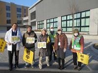 本日 田中中学校区CS(コミュニティースクール)主催による4校合同挨拶運動を実施しました。
