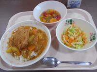 今日はカツカレーです。 運動会特別メニューで 給食でもエールを送っています。