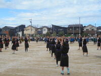 全校練習、エール交換、応援練習のたびに 「紅白」のがんばりを評価します。紅組の声がいいね。白組動きが速いね
