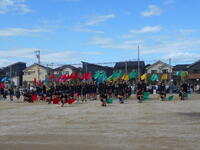 1200人分の紅白児童用ブルーシートを敷いて、臨場感が高まってきました。
