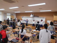 初日は5、6年生の教室に応援団の児童が行き、応援の練習を行いました。