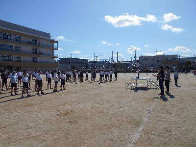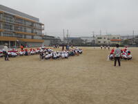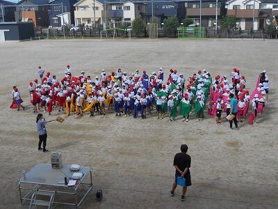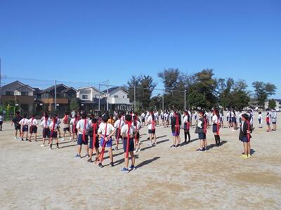 業間休みから3時間目にかけては、 全校一斉に校庭に集合し、開会式、閉会式、応援合戦