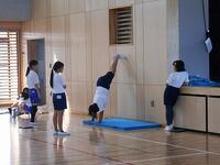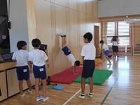 途中タブレットで基本の運動の動画を視聴、イメージを持って練習、自分の演技を動画で撮影して、