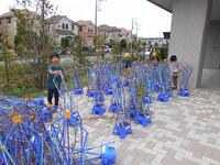 正門付近に整列しておいてあった1年生の朝顔の植木鉢がバサバサ倒れて