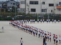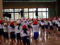 運動会の練習は2時間続きが多いのですが、校庭では隊形づくりと入退場を主に行い、自分の位置を確認します。体育館では「動き・踊り」の練習です。体調不良や怪我で見学の児童もいますが、見て学ぶこともできますのでがんばってほしいと思っています。各学年限られた時間の中で、創意工夫をしながら練習に取り組んでいます。