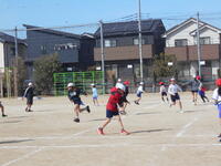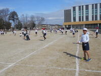 狭くなりつつある校庭では、3学級が体育を同時展開中です。