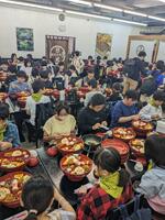 給食:いわしごはん、みそけんちん汁、ほうれん草のおひたし、冷凍リンゴ おいしかったですよ。