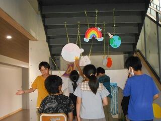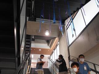 6年生の企画により、中央階段にいろいろな飾り(しかけ)がつけられました。