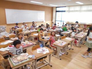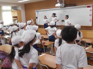 今日は、給食の様子。誕生日で牛乳で乾杯のクラスもありました。