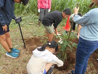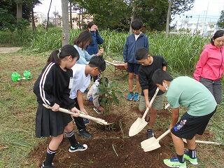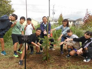 そこで、「やすらぎの森」に「かしわ」の木を児童会役員とともに植樹することにしました。