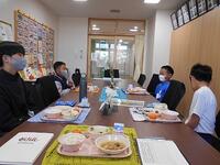 ②今日から6年生は、5~6名ずつ 校長室会食が始まりました。私からは、給食を食べながら北小の歴史を話しました。児童からは、なりたい職業、将来の夢、中学校での部活の希望などを聞き取りました。