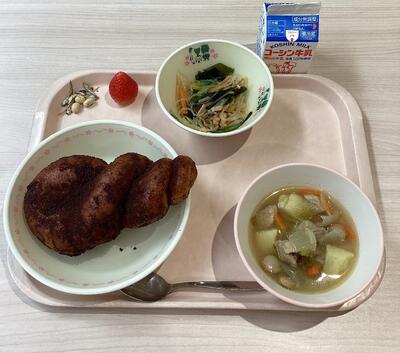 一覧へ リクエストメニュー&6年1組の献立 日時 2026年02月13日(金) 公開対象 給食室 詳細 ココア揚げパン ポトフ はるさめサラダ いちご 大豆小魚 牛乳 リクエストメニューのあげパン、今日はココア味です。ポトフ、はるさめサラダは6年1組の考えたメニューです。ポトフにはソーセージと、シャキッとしたレタスが入っています。はるさめサラダには、ハム、わかめが入っていて、どちらも体をつくるたんぱく質,ビタミンが多く,栄養のことも考えらえたメニューです。 作成者 田中北小学校管理者 更新日時 2026-02-13 17:16:43