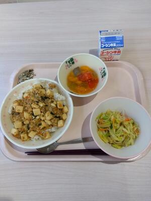 一覧へ 麻婆豆腐ごはん 日時 2026年02月02日(月) 公開対象 給食室 詳細 麻婆豆腐ごはん バンサンスウ フルーツゼリーポンチ 小魚 牛乳 6年生のリクエストメニュー、麻婆豆腐。中国のマーさんというおばあさんが作ったから麻婆豆腐と言われるようになったそうです。給食のマーボー豆腐は、にんじん、ニラ、たけのこなど、いろいろな野菜が入っています。 今日はバンサンスウ、ゼリーポンチもみなさんに人気のメニューです。 寒い2月を元気に過ごせるように、しっかり食事を食べましょう。 作成者 田中北小学校管理者 更新日時 2026-02-02 17:34:51