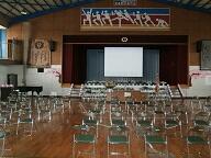 6年生による歓迎の言葉と校歌紹介がスクリーンに映されました。