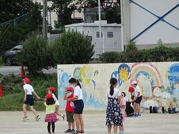 1年生のダンスを見たり,おにいさんおねえさんたちといっしょに走ってプレゼントをもらったり,楽しいひと時を過ごすことができました。