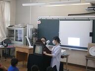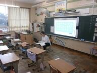 実物投影機やマイクを使って実施します。