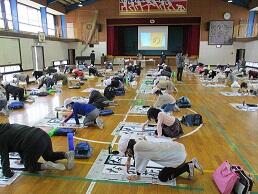 公開授業を体育館で行っていきます。