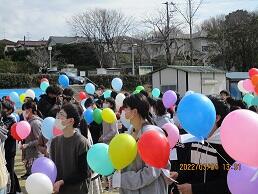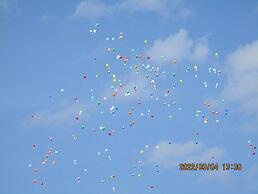 環境にやさしいバルーンに手紙をつけて放ちます。後日午後の様子は動画になって観られる予定です。