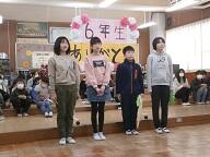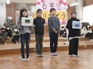 新児童会役員引継ぎ式のあと,各学年から6年生へのプレゼントを紹介しました。