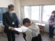 各学年の代表児童に修了証書が手渡されました。