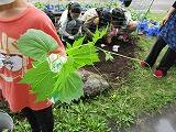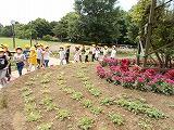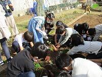 牛乳パックを利用して,種から育てた苗を花壇に植え替えました。