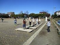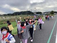 交通ルールを守り,防災公園まで歩きます。