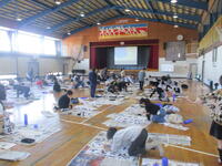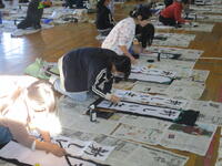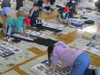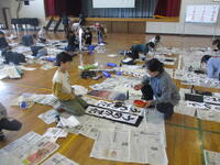 今日は、4・5年生が、体育館で校内書き初め大会を行いました。