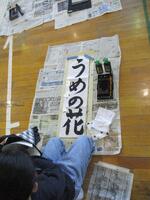 明日は、3・6年生が体育館で書き初め大会を行います。