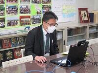 終業式は,校長室からリモートで行いました。