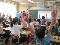 真剣に話を聞き,メモを取る5年生です。