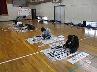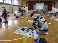 体育館では,5年生と6年生が書き初めの練習をしています。