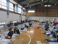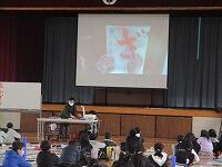体育館では4年生が講師の先生をお招きして毛筆に取り組んでいました。