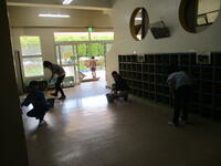 6年生が明日の入学式のために前日準備を行いました。