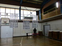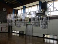 本校では、体育館に全校児童の作品を貼り出して行いました。